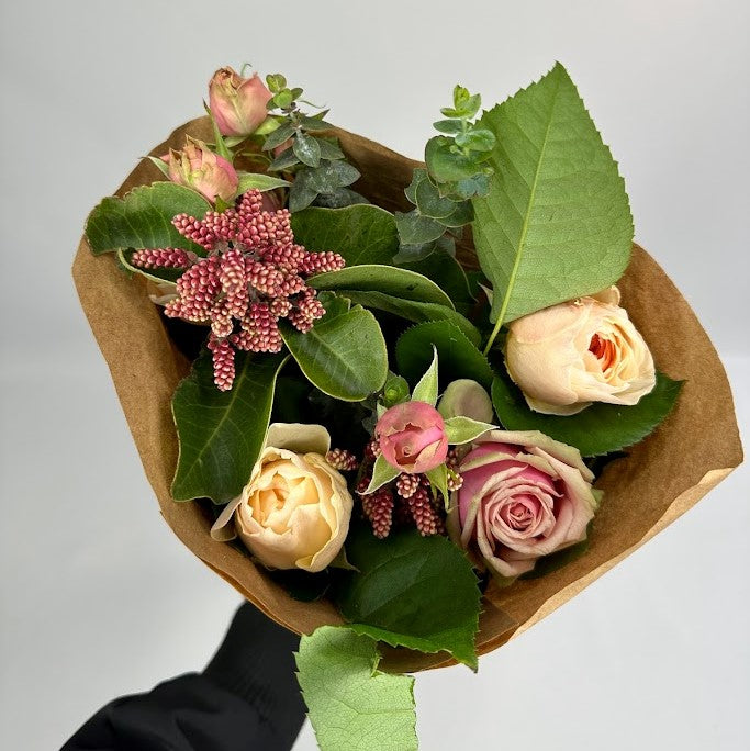 The Chīsai bouquet is perfect for those looking for a simple yet elegant arrangement. Featuring a mix of greenery and five stems of roses.